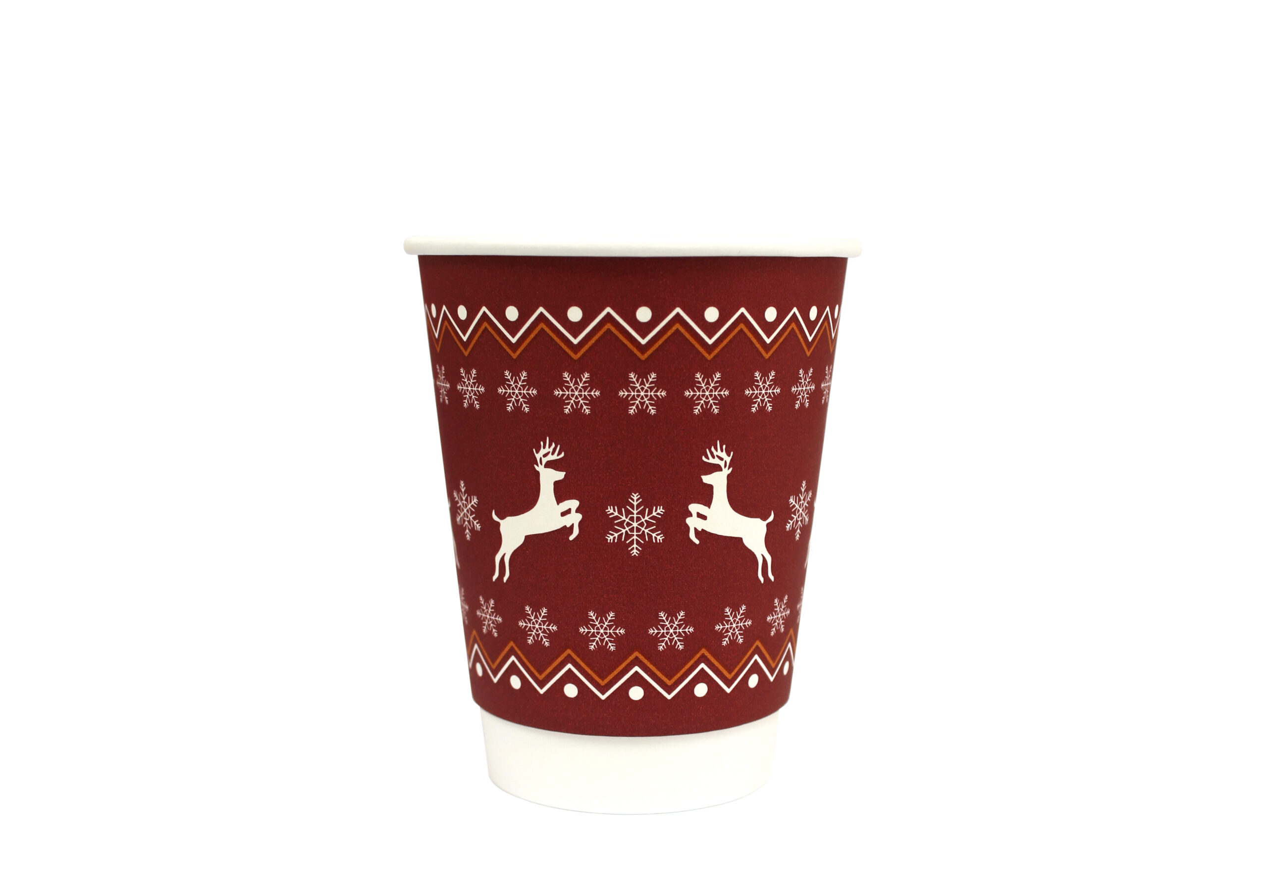 12oz Double Wall Christmas Cups Red with Reindeer & Snowflakes (500)