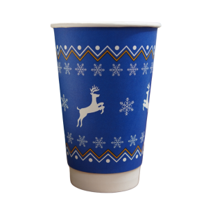 16oz Double Wall Blue with Reindeer & Snowflakes Christmas Cup (x500)