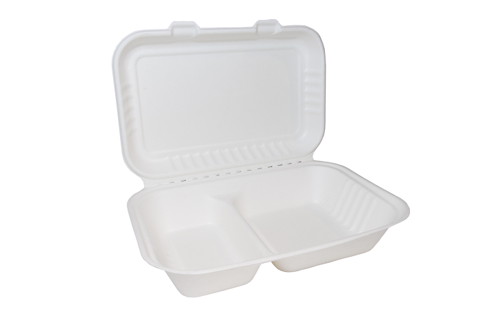 9″ x 6″ White Moulded Fibre Bagasse Clamshell Two Compartments Box (200)-To Order