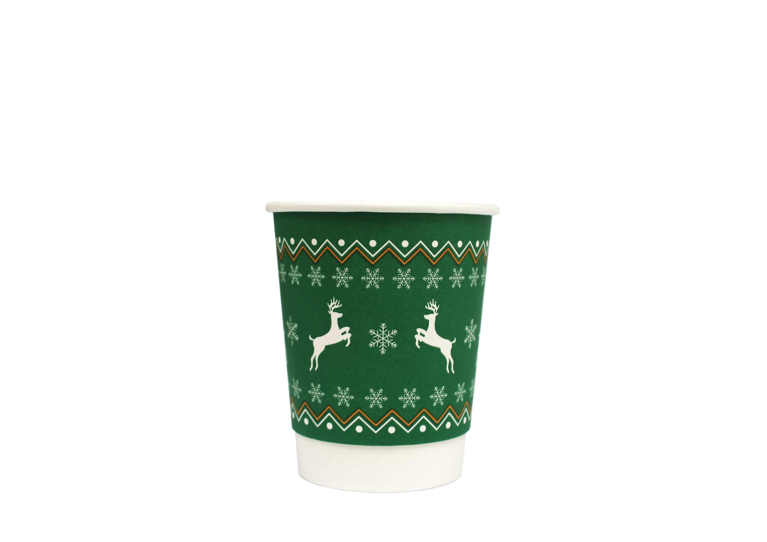 8oz Double Wall Green with Reindeer & Snowflakes for Christmas  (x500)