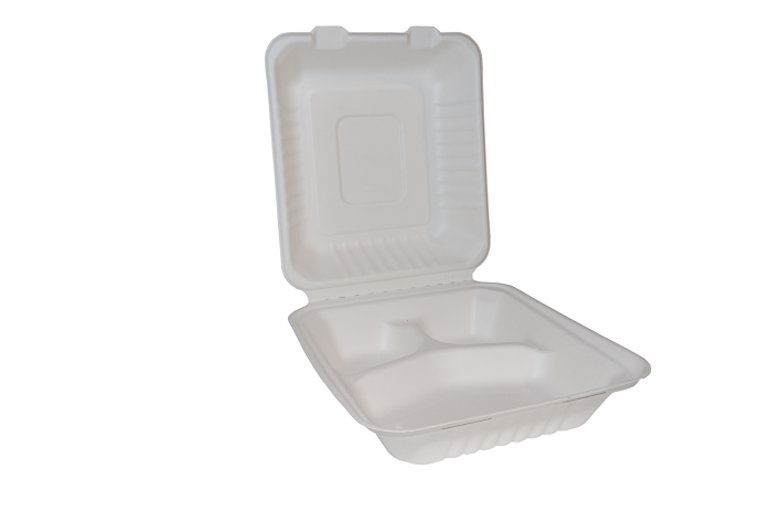 9″x9″ Compostable Square 3 Compartment Bagasse Box (x200) – To Order