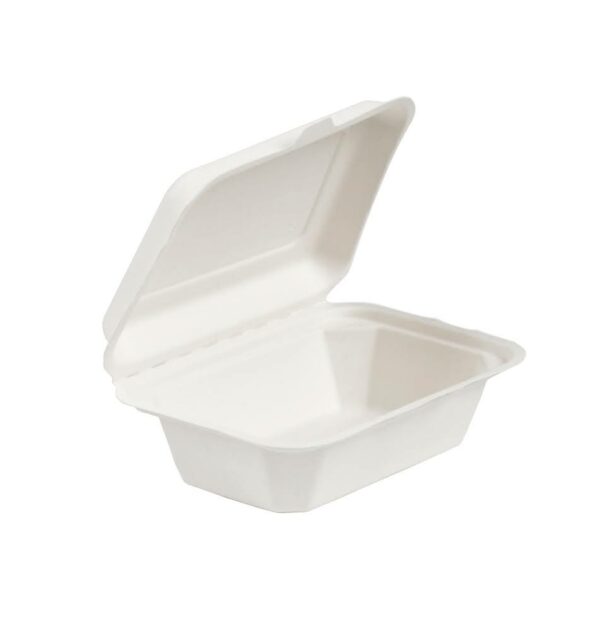 7″ x 5″ Medium White Compostable Bagasse Clamshell Box (x500)