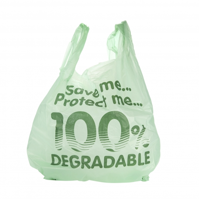 Light Green Tint Printed Vest Carrier Bag 100% Degradable With EPI  (x1000)