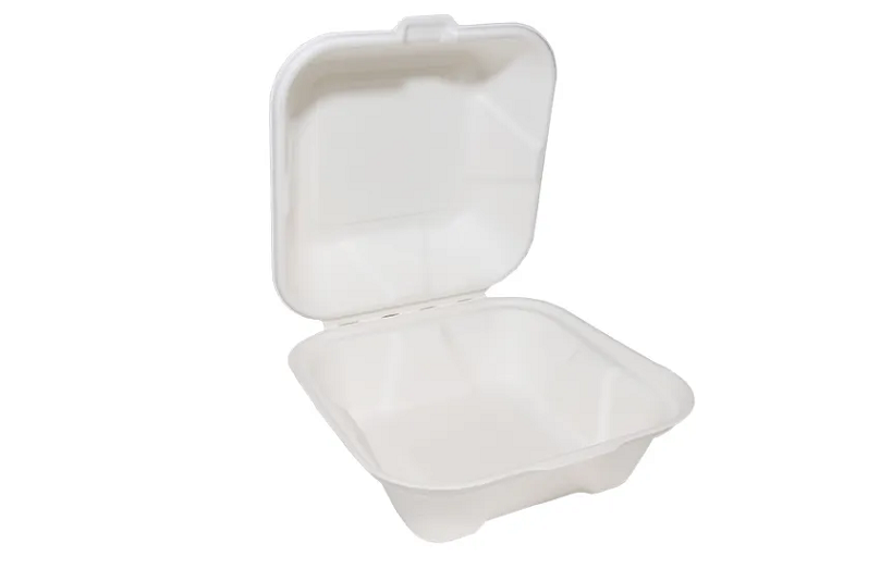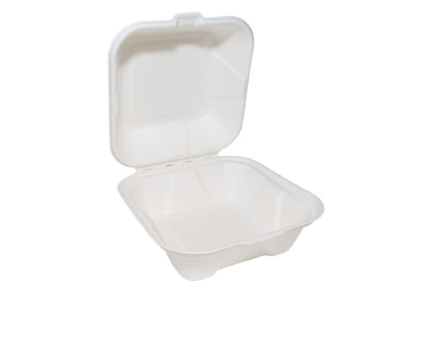 Bagasse Clamshell Biodegradable Food Box, Eco-Friendly – Recyclable, Bagasse is made from reclaimed sugarcane, its a stylish non-wood fibre eco alternative to plastics