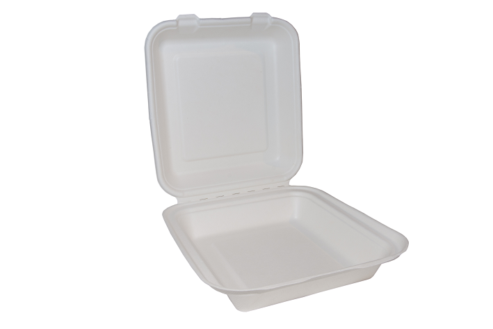 8″ x 8″ White Moulded Fibre Bagasse Clamshell Box (x200)