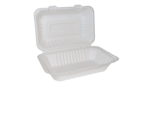 Bagasse Clamshell Biodegradable Food Box, Eco-Friendly – Recyclable, Bagasse is made from reclaimed sugarcane, its a stylish non-wood fibre eco alternative to plastics